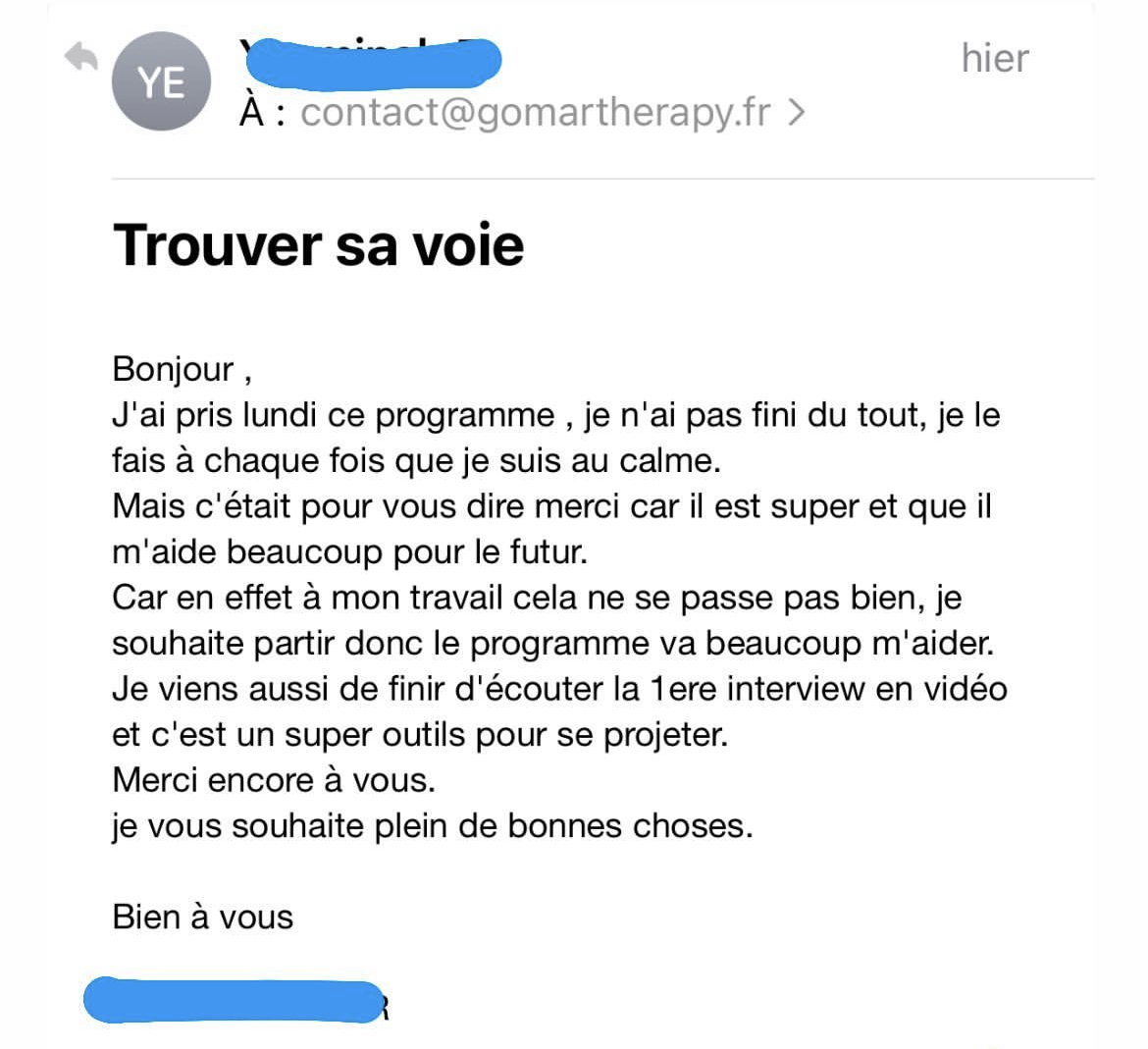 Tu peux m'envoyer un mail à : gomartherapy@gmail.com